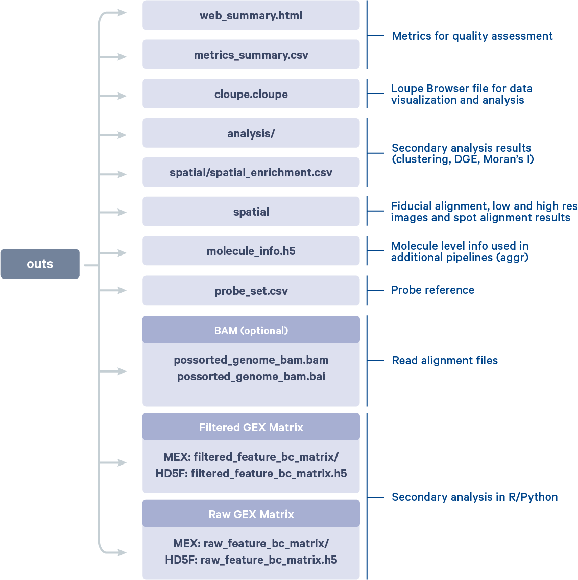 - Per-molecule read information: /spaceranger_tutorial/Visium_FFPE_Mouse_Brain/outs/molecule_info.h5