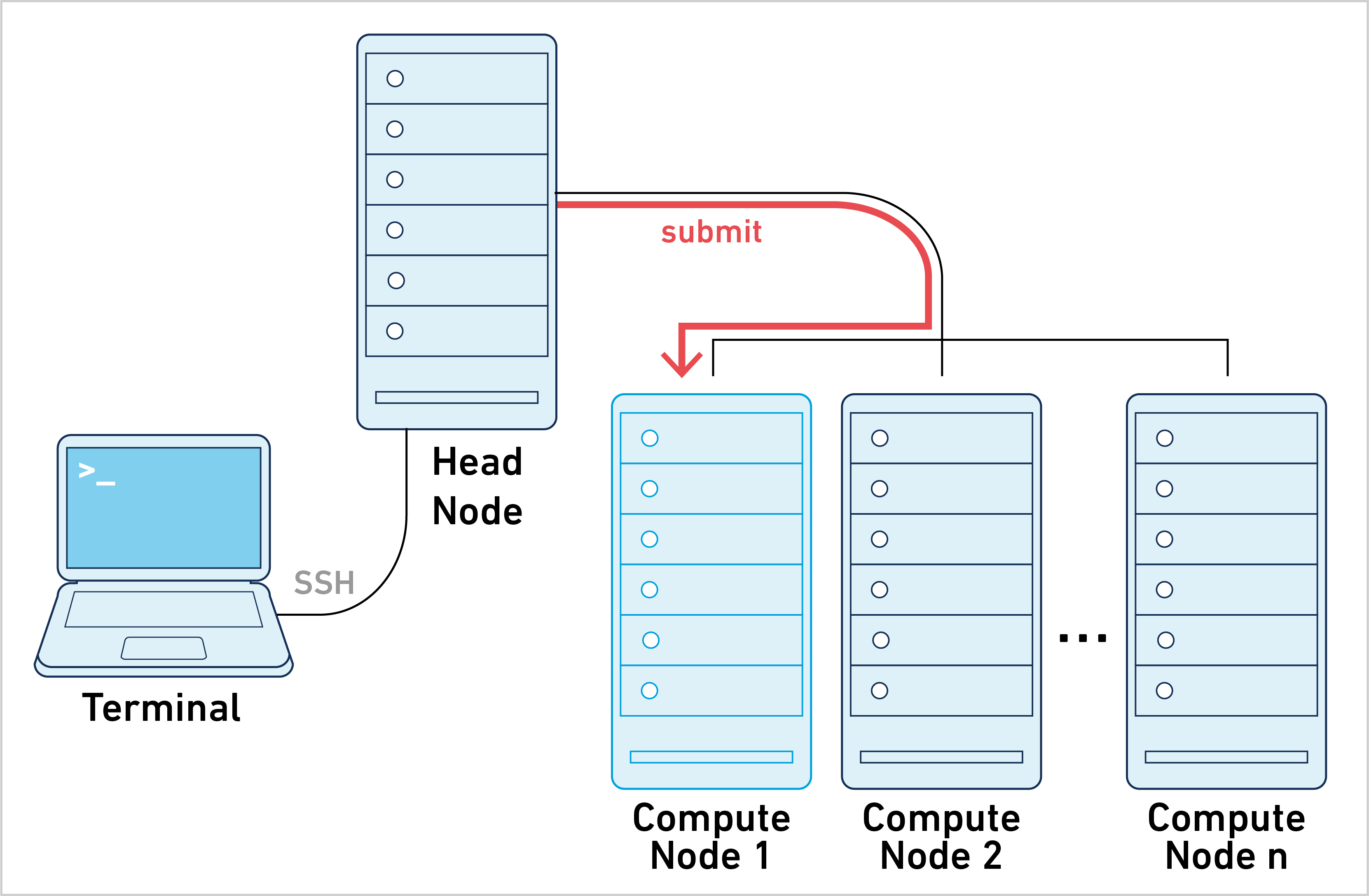 This mode of operation is what most people have in mind when it comes to working with clusters; a large computational job is submitted to the cluster, and there is one Job ID to track during job execution. To learn more, please go to the job submission mode page.
