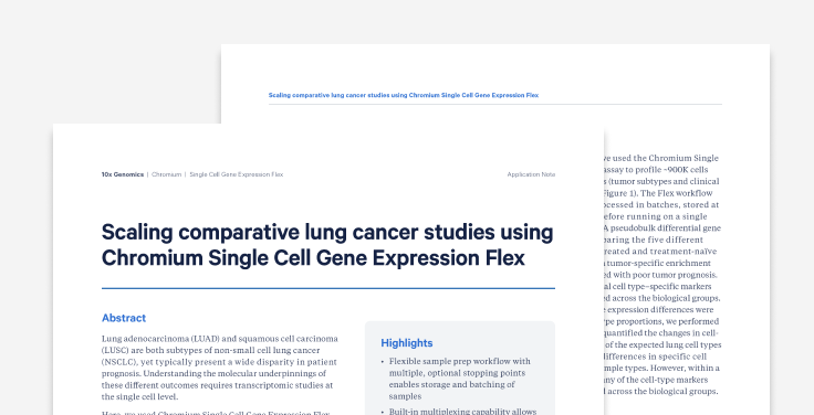 Learn how one researcher batched 32 lung cancer samples across three clinical stages, profiling ~900k cells in one run, revealing novel insights into progression of two cancer subtypes.