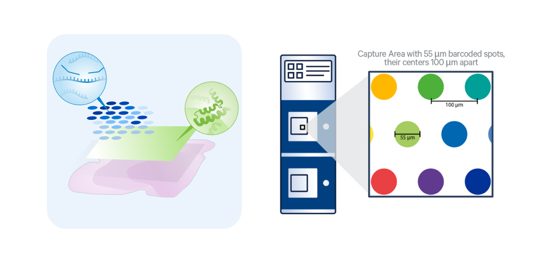 Resolution of 1–10 cells per 55µm barcoded spot
