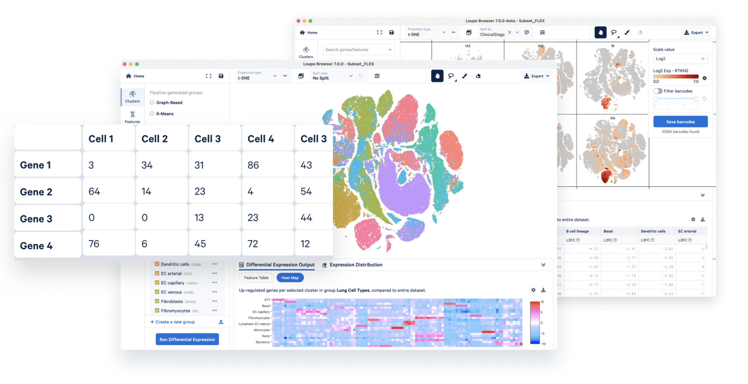 Visualize your processed data with the interactive Loupe Browser, quickly plotting differential expression of your favorite genes