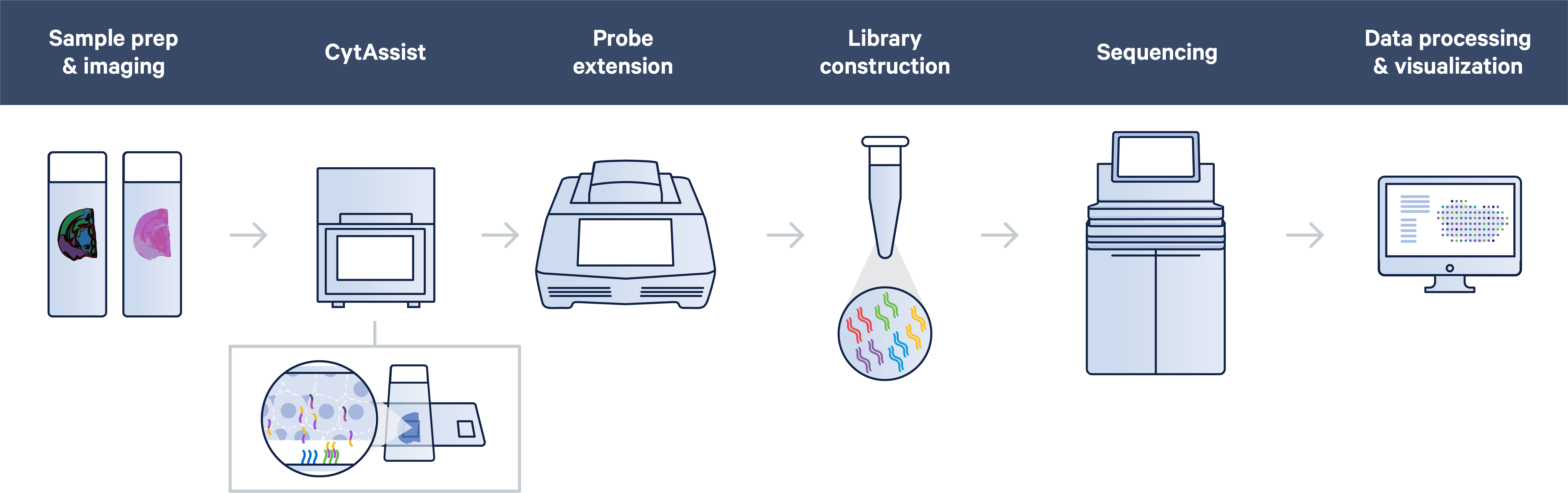 The CytAssist instrument uses kits with a probe-based chemistry compatible with human and mouse FFPE or fresh frozen samples.