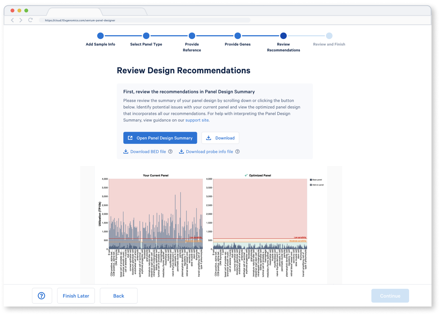 The Xenium Panel Selector helps you find the right panel, letting you filter by and/or enter genes to check overlap with 10x Genomics pre-designed panels. It also highlights genes for custom add-on panels.