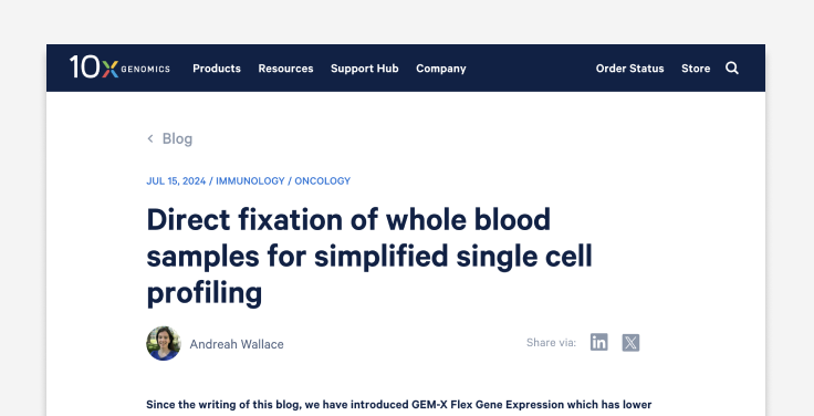 Get the details on direct fixation and storage of whole blood for downstream scRNA-seq, preserving critical biology and capturing fragile cell types.