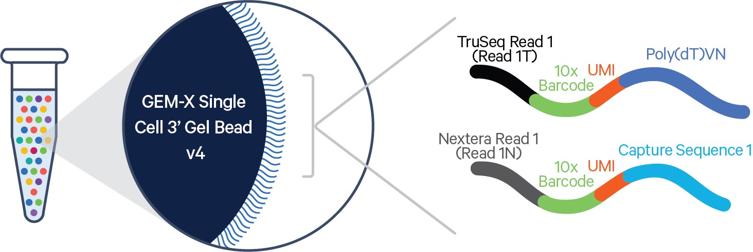 Chromium Single Cell Universal 3' Gene Expression provides single cell transcriptome 3' gene expression alongside the detection of surface protein expression in tens of thousands of cells.